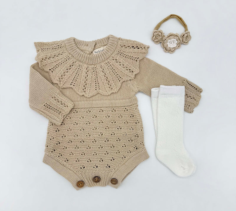 Peter Pan Collar Linen Bubble Romper + Bow | Allie