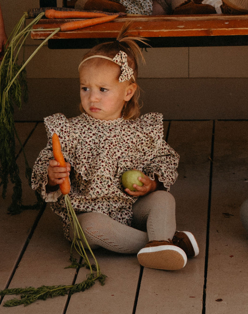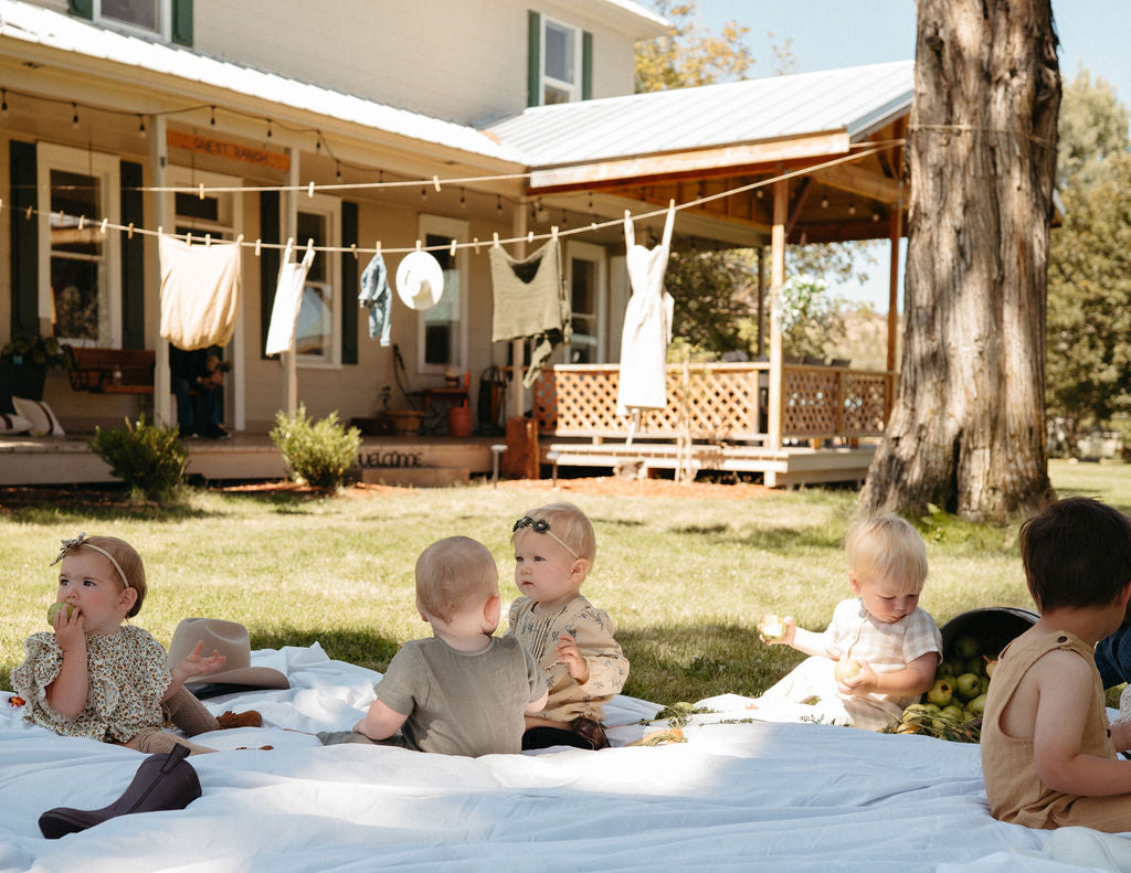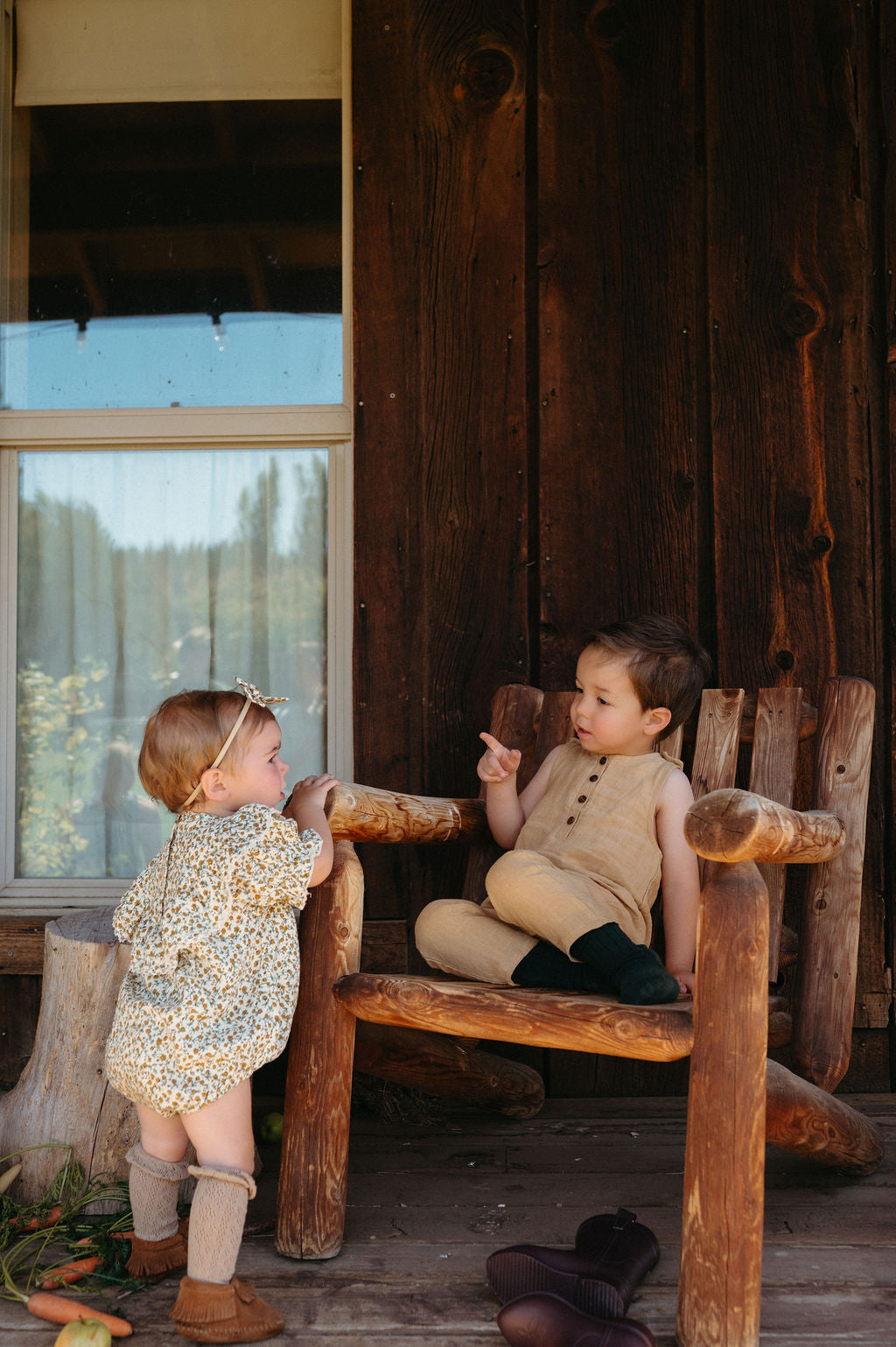 The Front Porch Collection is a tribute to those soft, in-between moments of childhood lived close to the land — where little ones twirl in hand-stitched dresses, climb wooden steps with bare feet, and nap under the creak of the porch swing.